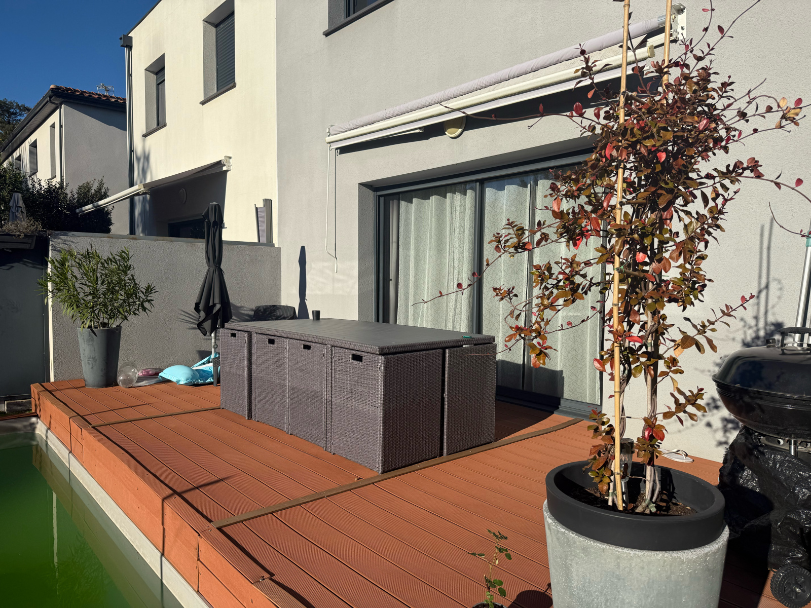 Située sur le bas de St Jean proche l'Union, maison mitoyenne d'un coté, dans un impasse au calme, habitation très récente. En rez de chaussé, séjour très lumineux donnant sur une terrasse expo sud par une large baie vitrée, cuisine équipée ouverte, avec placards, hotte, four et plaque.Au premier étage, une suite parentale avec dressing aménagé et salle d'eau, trois chambres et une salle de bain WC. Garage une voiture. Volets roulants électriques avec centrale.