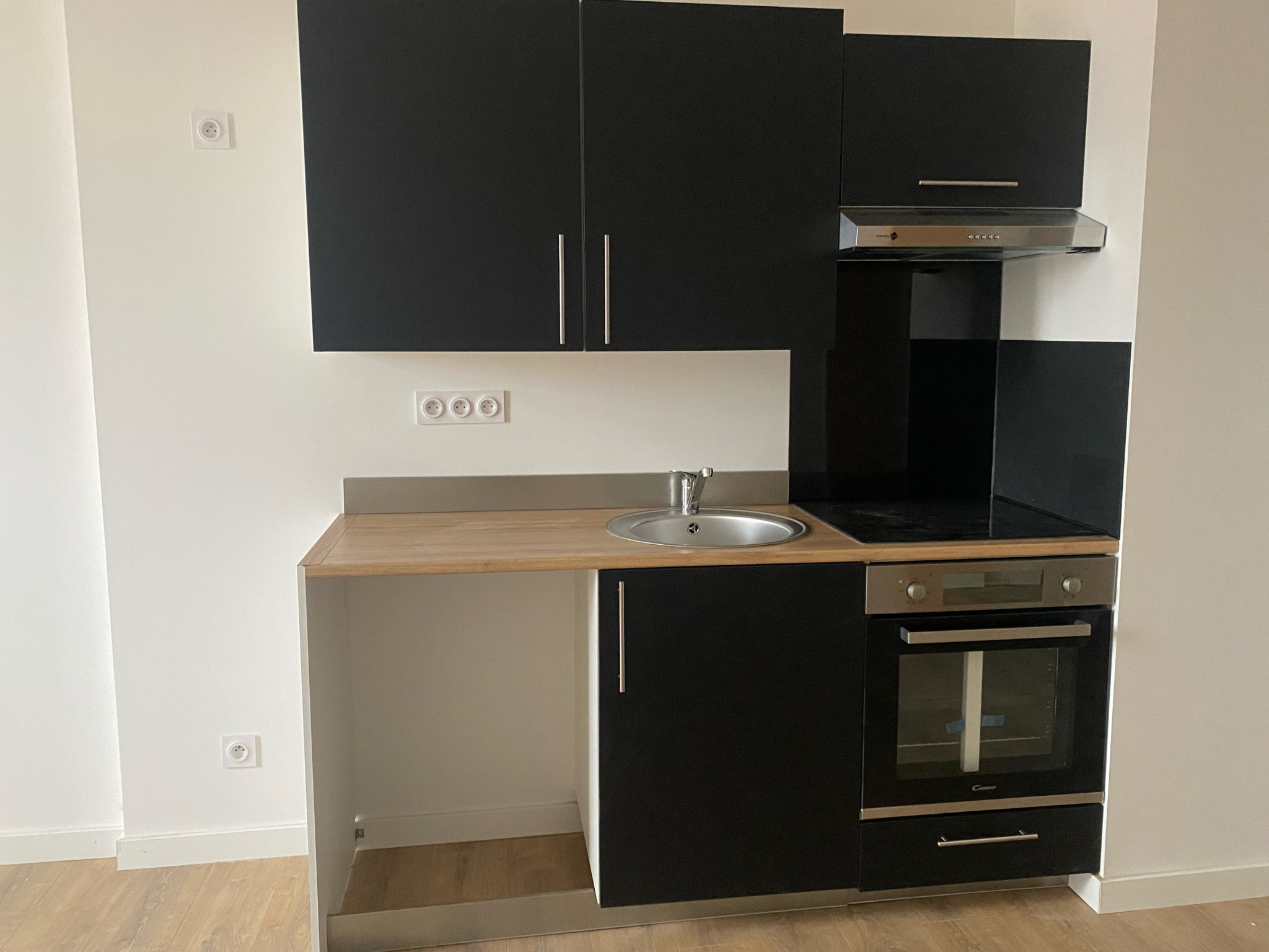 Pièce à vivre de 22 m² avec cuisine équipée en meuble, hotte plaque, salle d'eau avec emplacement machine à laver et wc séparés, une chambre avec placard aménagé. Climatisation réversible.