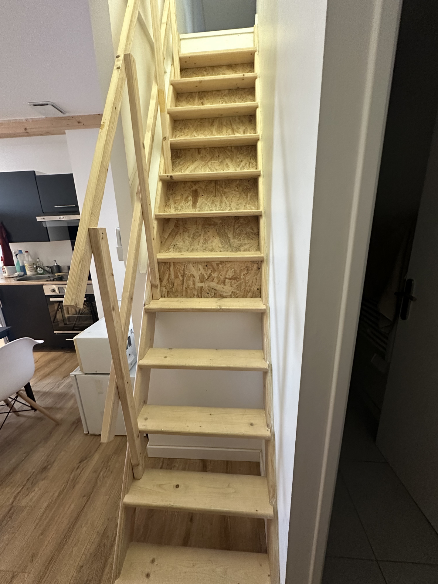 L'appartement dispose d'une place de parking et d'une petite sortie extérieure de type balcon ouvert.