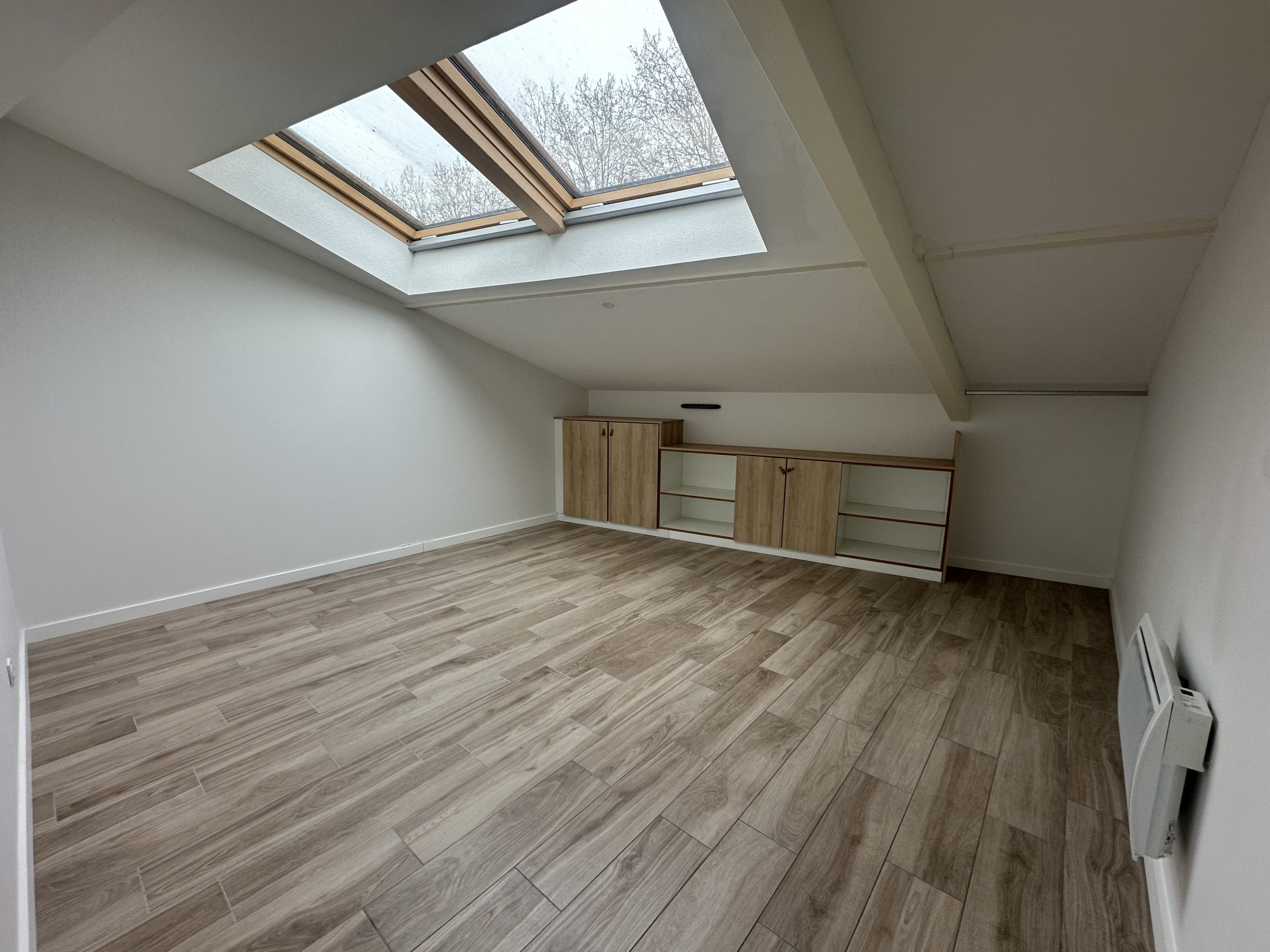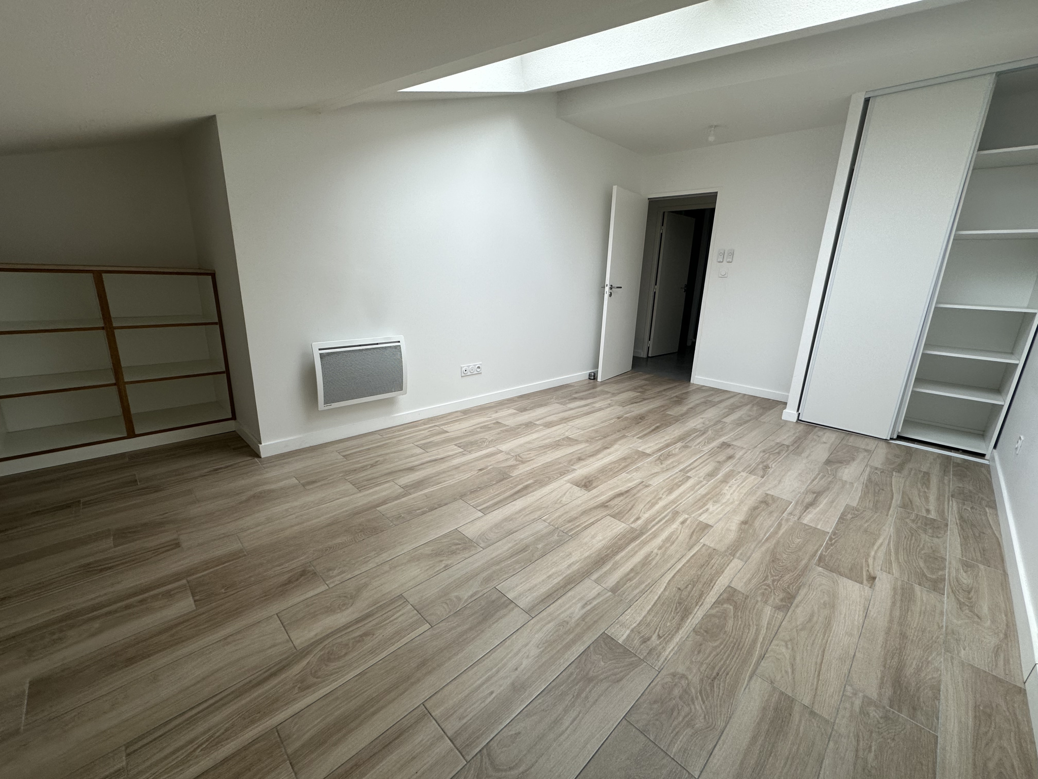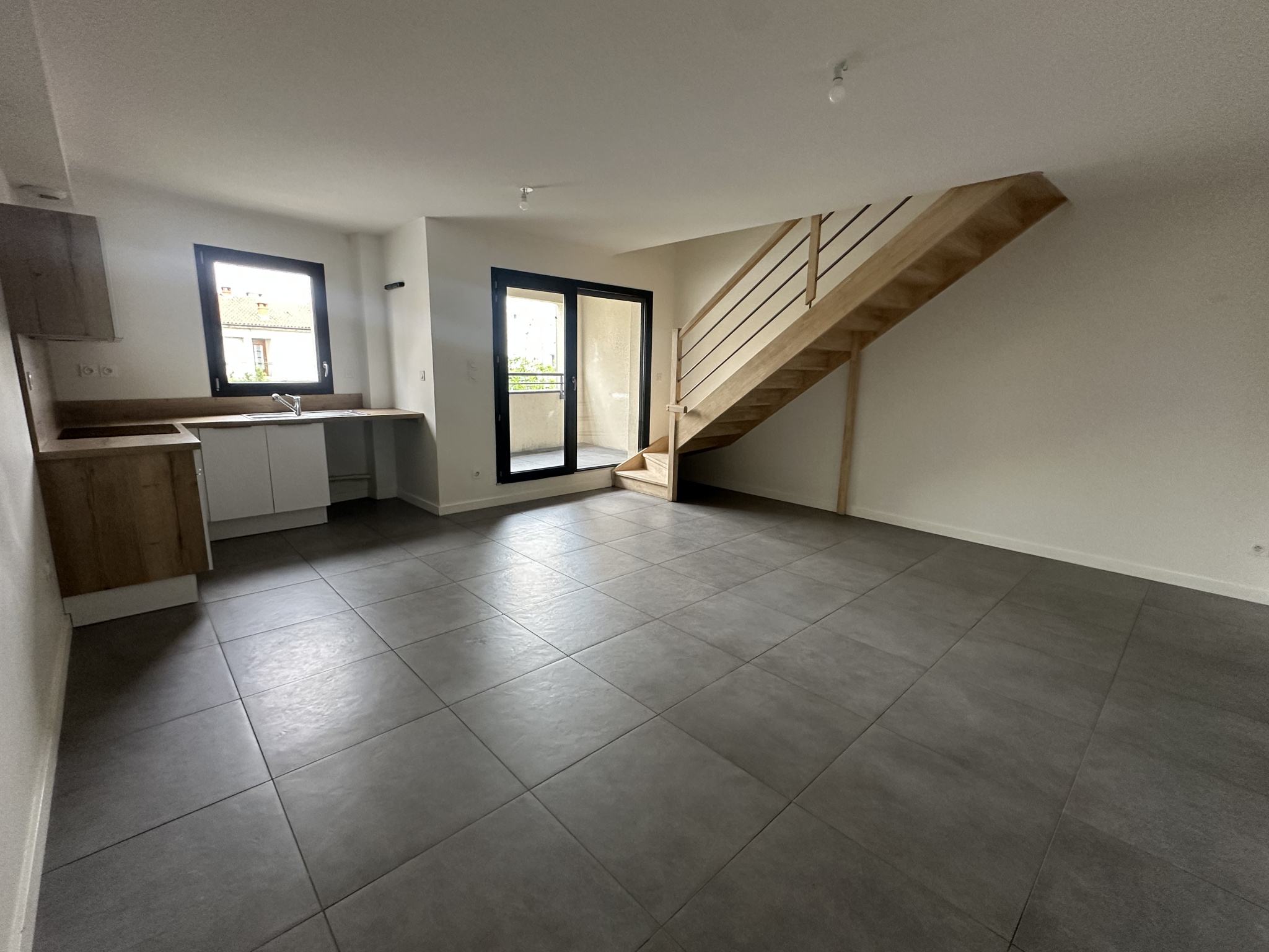 Grand appartement T3 duplex de 70m² situé au premier étage sans ascenseur d'un petit immeuble de seulement 6 appartements, composé d'une entrée avec placard, d'une belle pièce de vie de 26 m², ouvrant sur balcon de 4,3 m². Cuisine équipée en meuble, hotte et plaque.