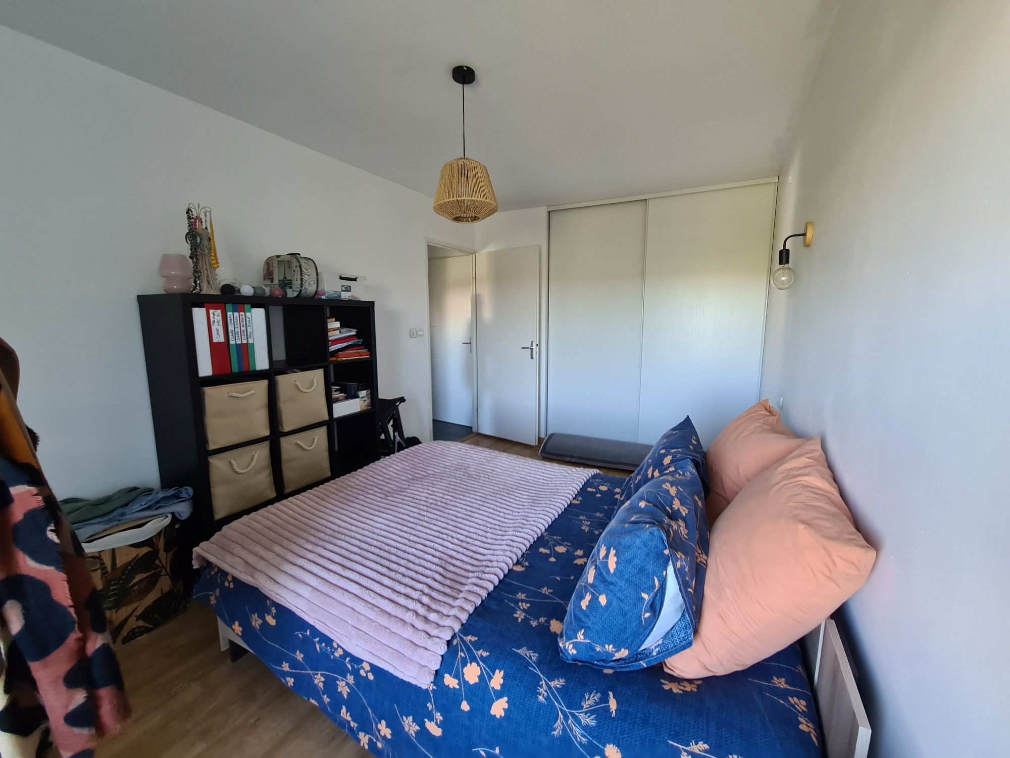 Le dégagement dessert un wc séparé, une salle de bain et deux chambres avec placards dont une de 14 m² avec balcon.