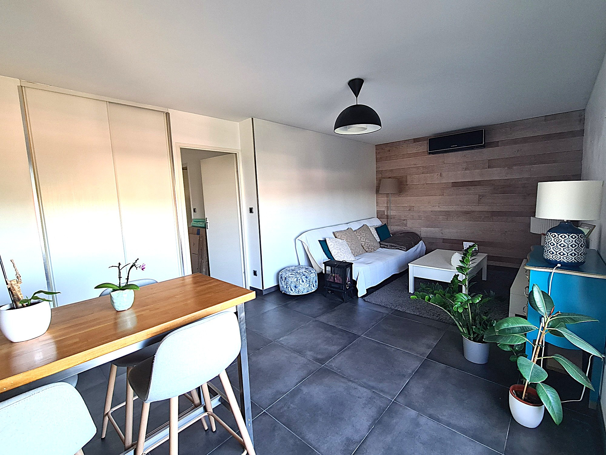 Chauffage individuel électrique, climatisation réversible dans le séjour.