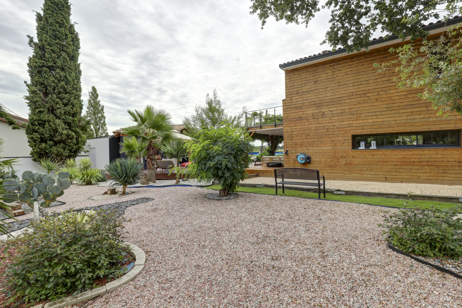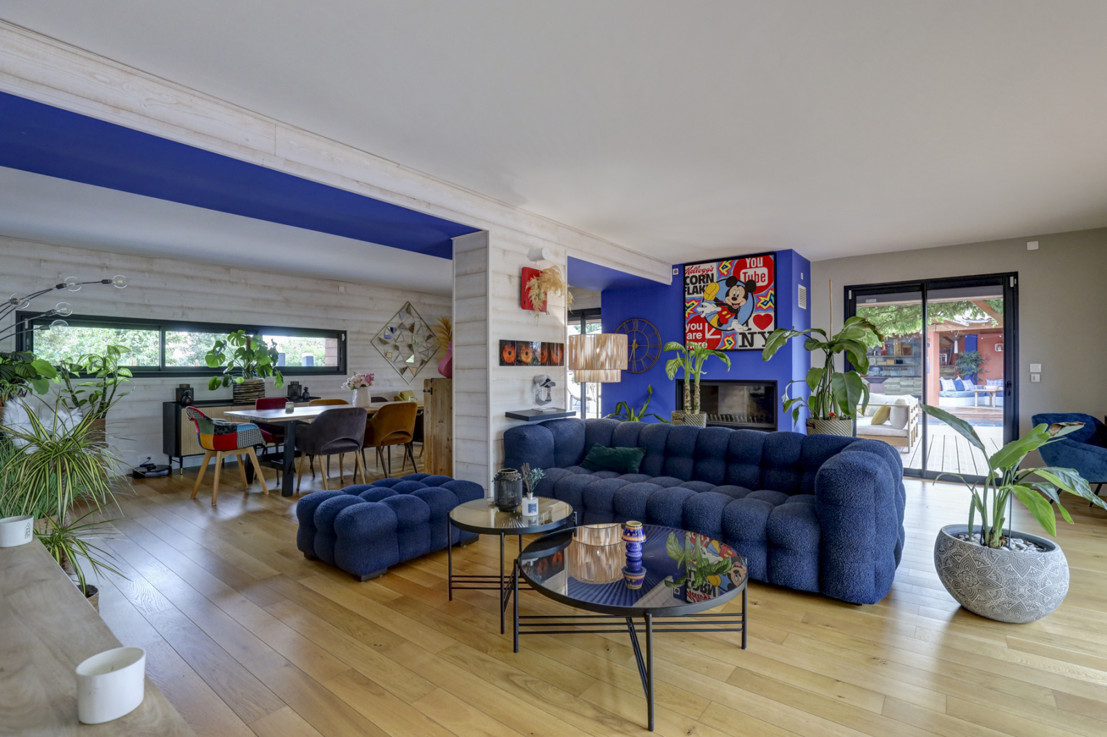 Découvrez cette magnifique maison à l’architecture unique, alliant le charme du bois et un style résolument moderne, dans un environnement calme et verdoyant, sans aucun vis-à-vis.