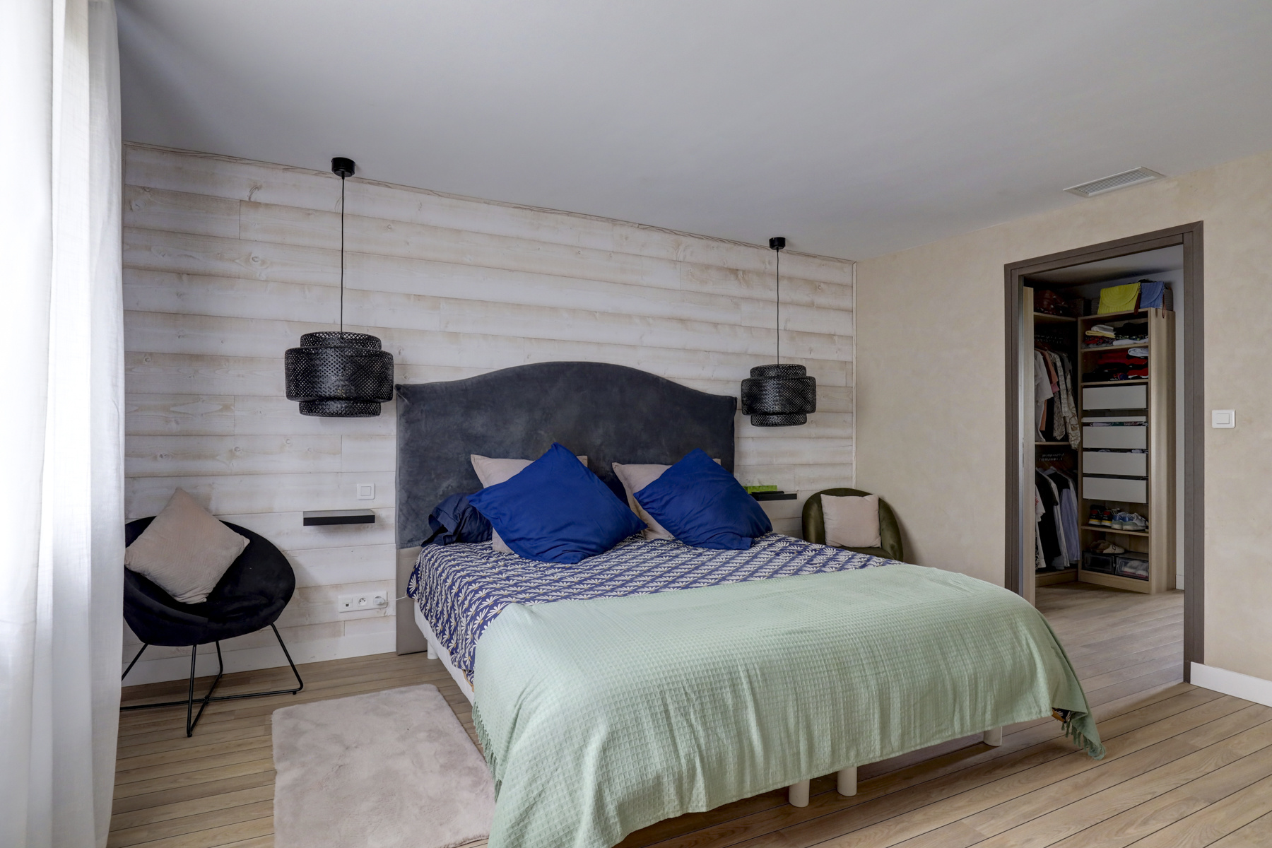 À l’étage, vous trouverez quatre grandes chambres, dont une suite parentale avec dressing et salle d’eau, ainsi qu’une salle de bain et une salle d’eau indépendantes, offrant confort et fonctionnalité pour toute la famille.