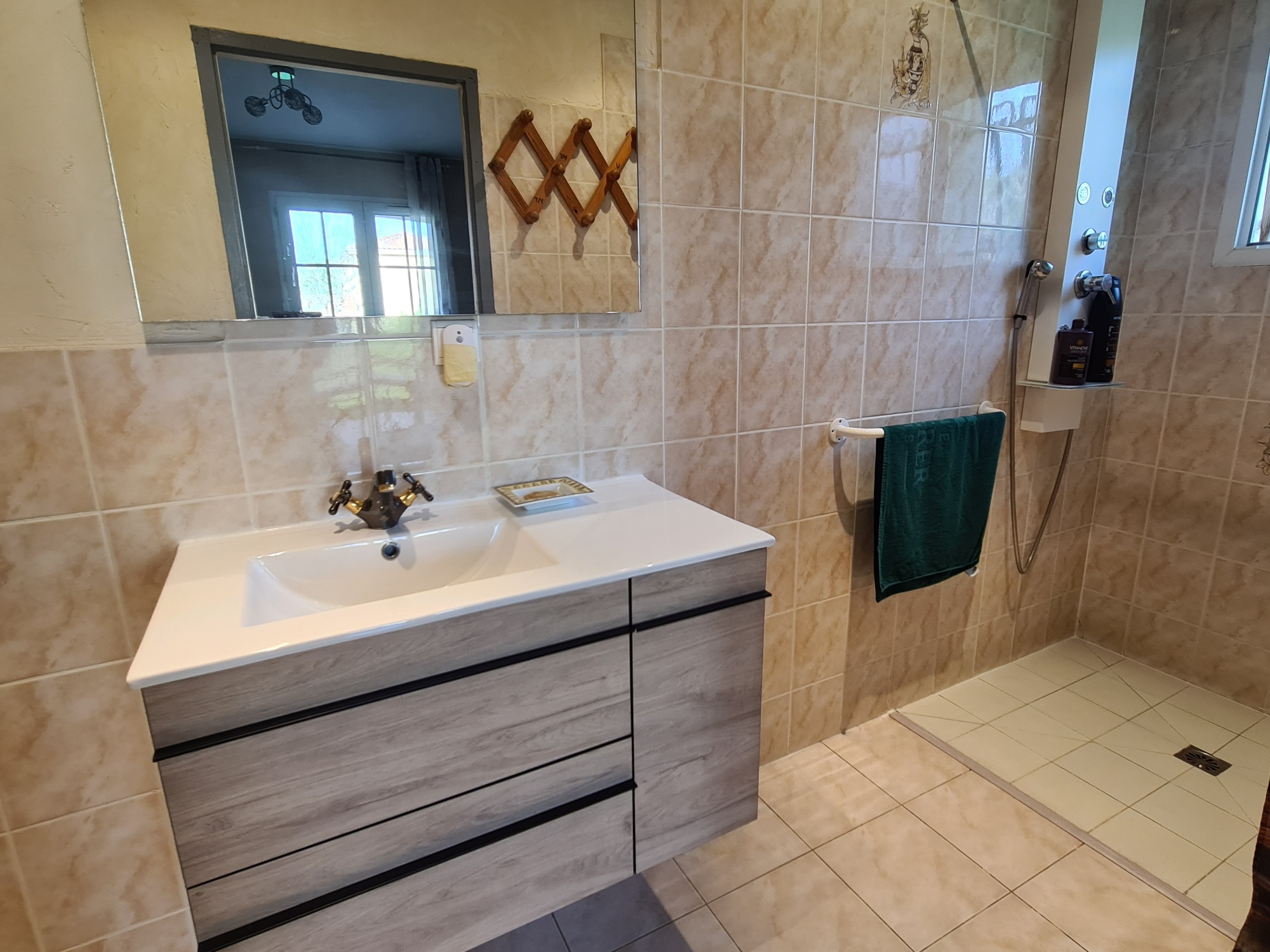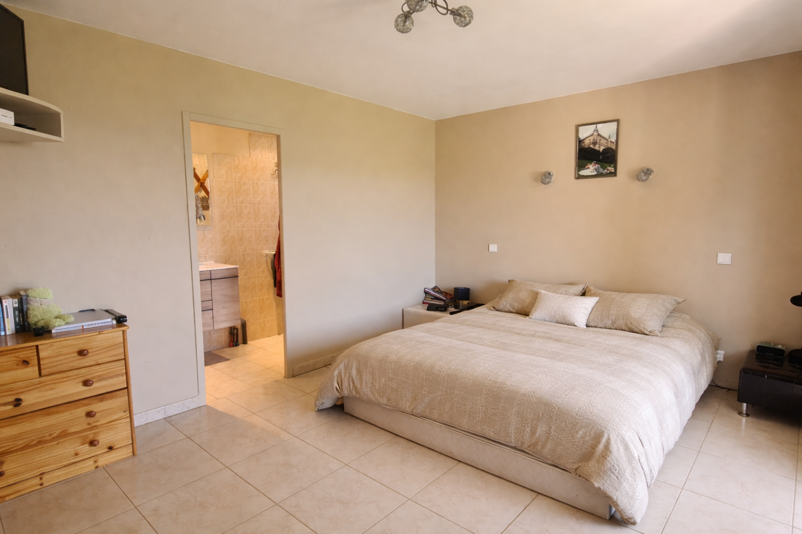 La maison dispose d’une chambre parentale avec sa salle d’eau privative.