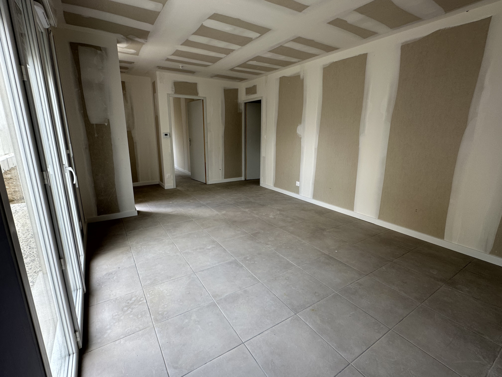 Maison de plain pied avec 3 chambres de 80 m² hab sur 282 m² de parcelle, dans un petit lotissement de 18 villas hors copropriété.