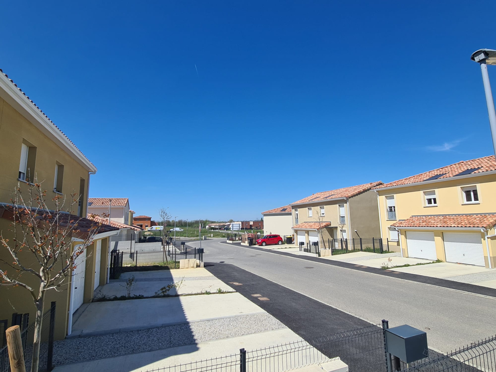 Coté extérieur la parcelle de 315 m² est cloturée et engazonnée.