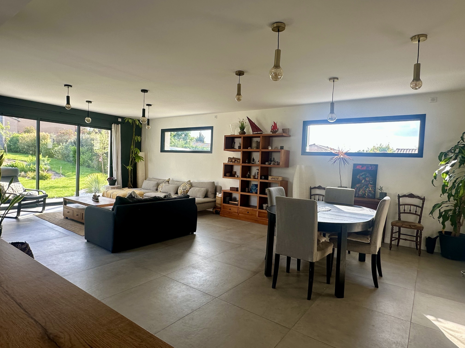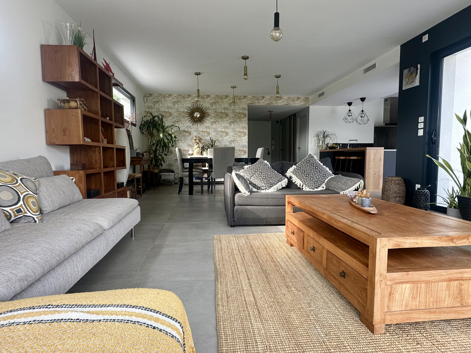Dès l’entrée, vous serez séduits par la fonctionnalité de ce bien avec ces nombreux rangements. La pièce de vie, baignée de lumière, offre près de 60 m² avec une cuisine ouverte entièrement équipée et menuiserie à galandage, prolongeant naturellement l’espace vers l’extérieur. Un vaste cellier/buanderie avec accès direct au jardin vient compléter cet espace de vie.
