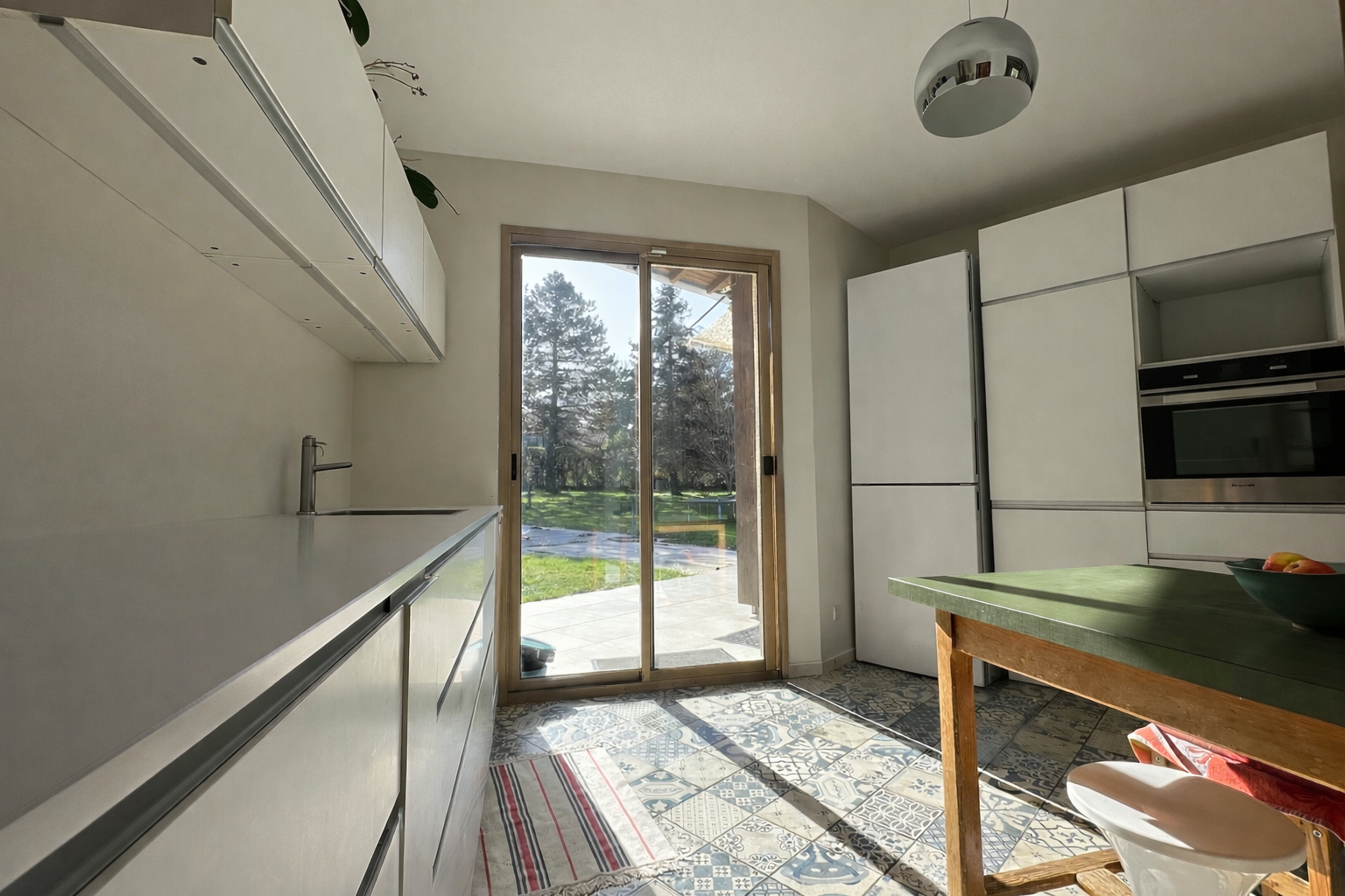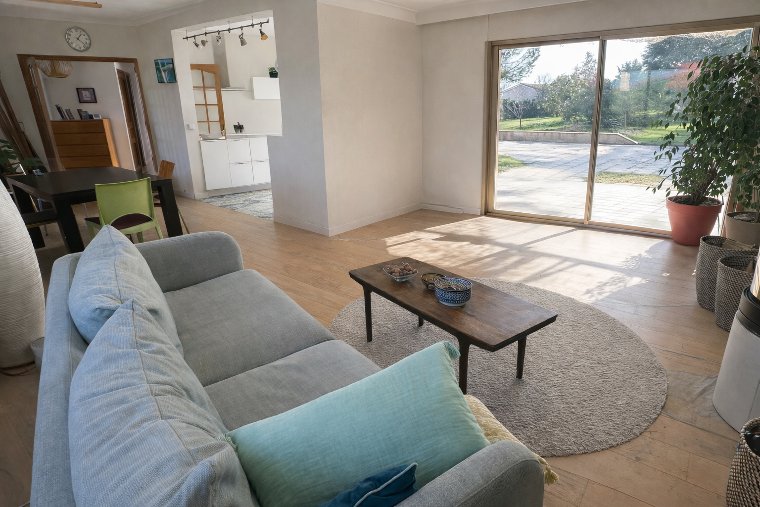 Prestations complémentaires : menuiseries en aluminium double vitrage, chauffage par pompe à chaleur air/eau, ballon thermodynamique et isolation des combles récente.
