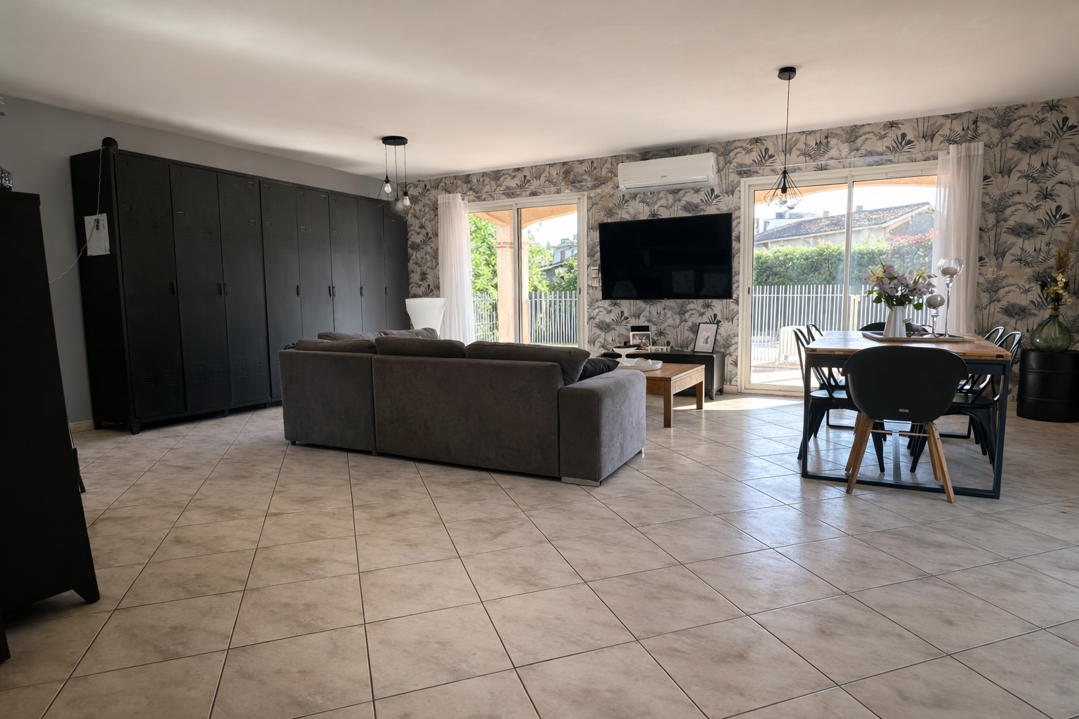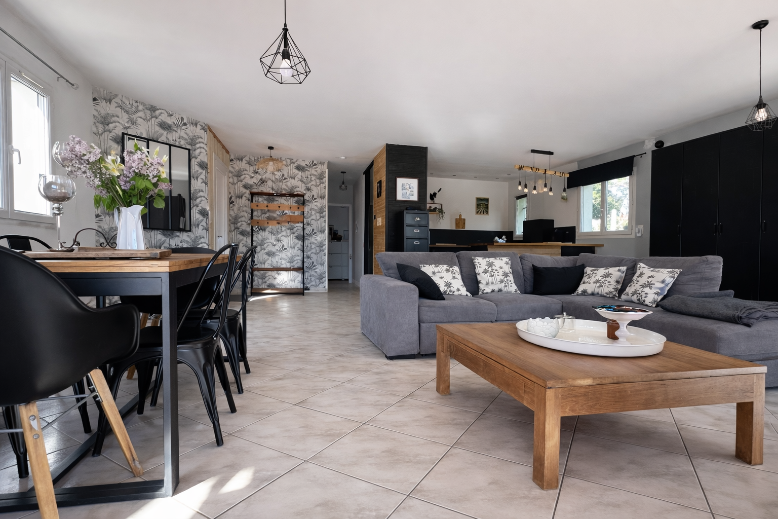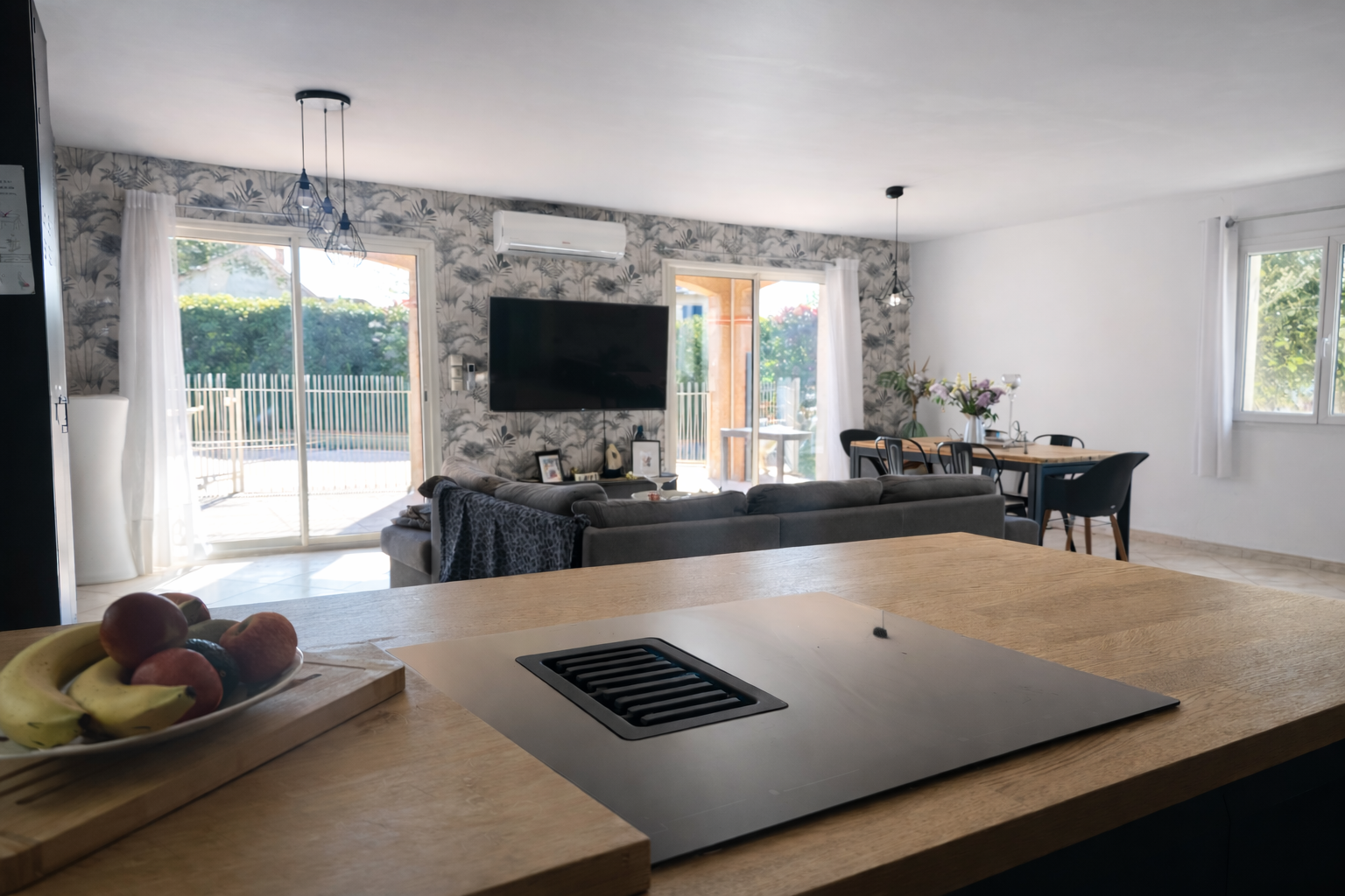 Cet espace de vie s’ouvre directement sur une agréable terrasse couverte, idéale pour profiter des beaux jours.