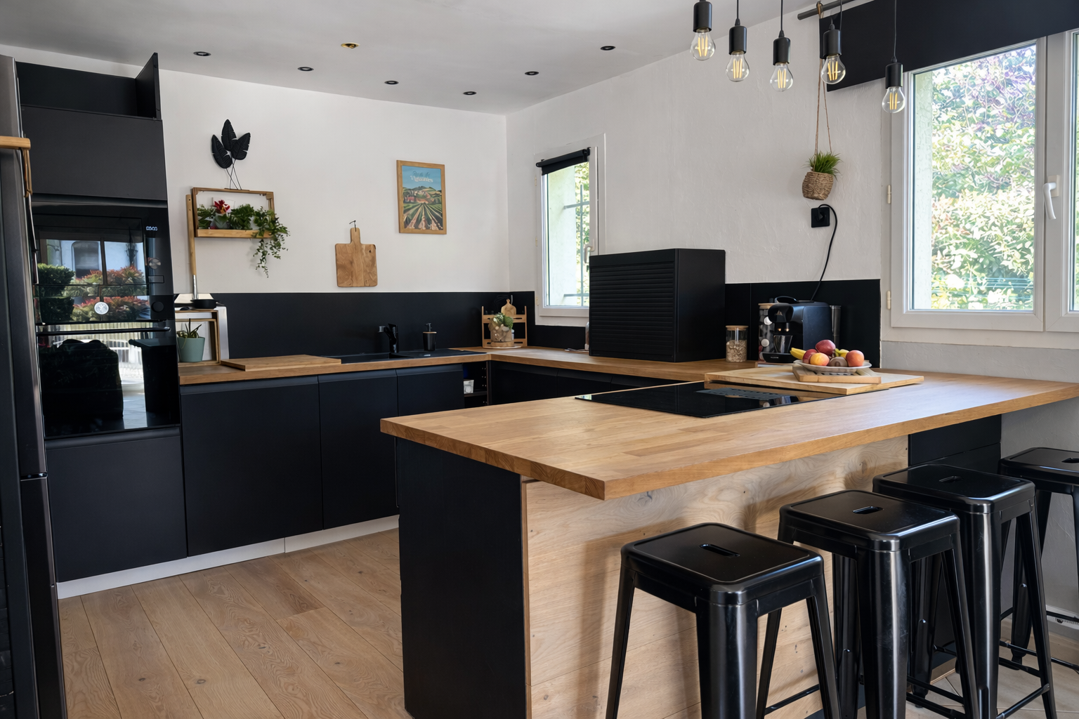 Ce dernier permet d’accéder à un espace complémentaire aujourd’hui aménagé en petit salon et quatrième chambre, parfait pour créer un espace indépendant (ado, télétravail, invités…).
