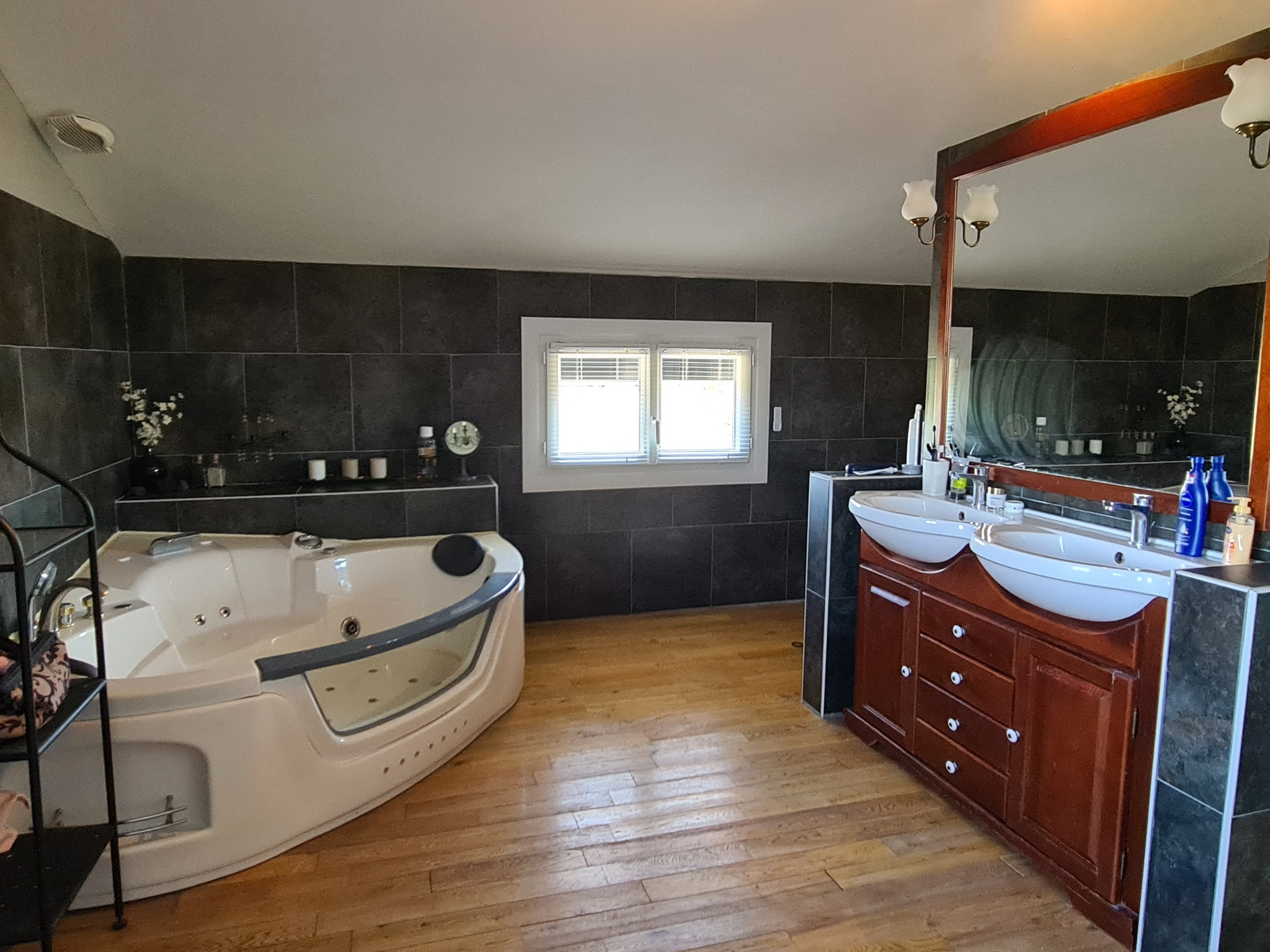 Une seconde salle de bain dessert les autres chambres.