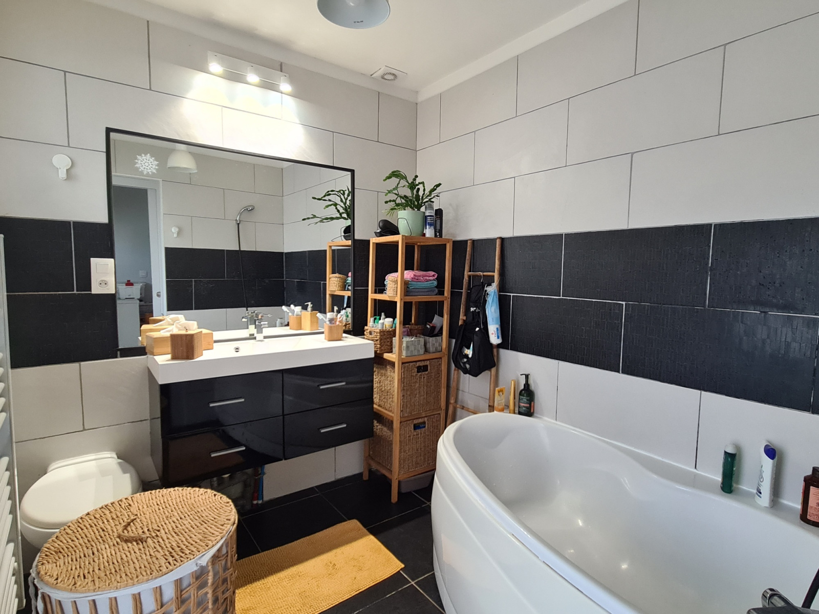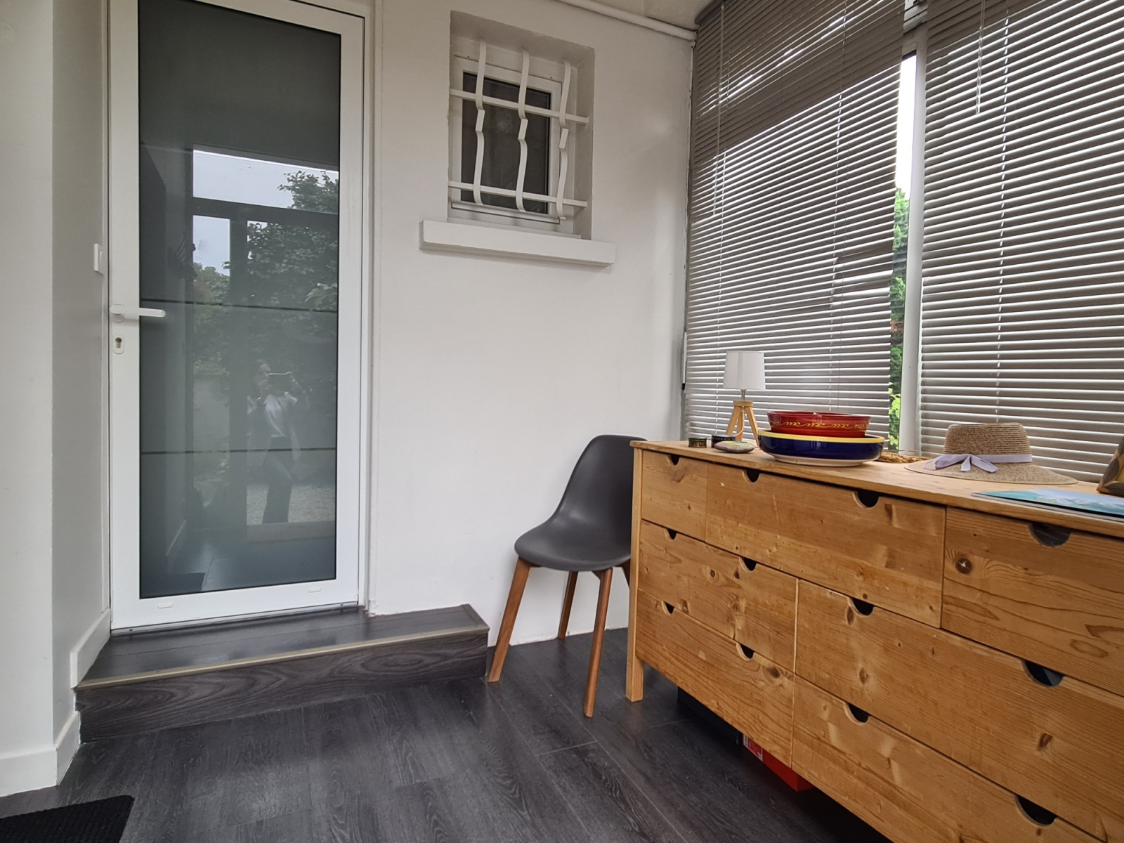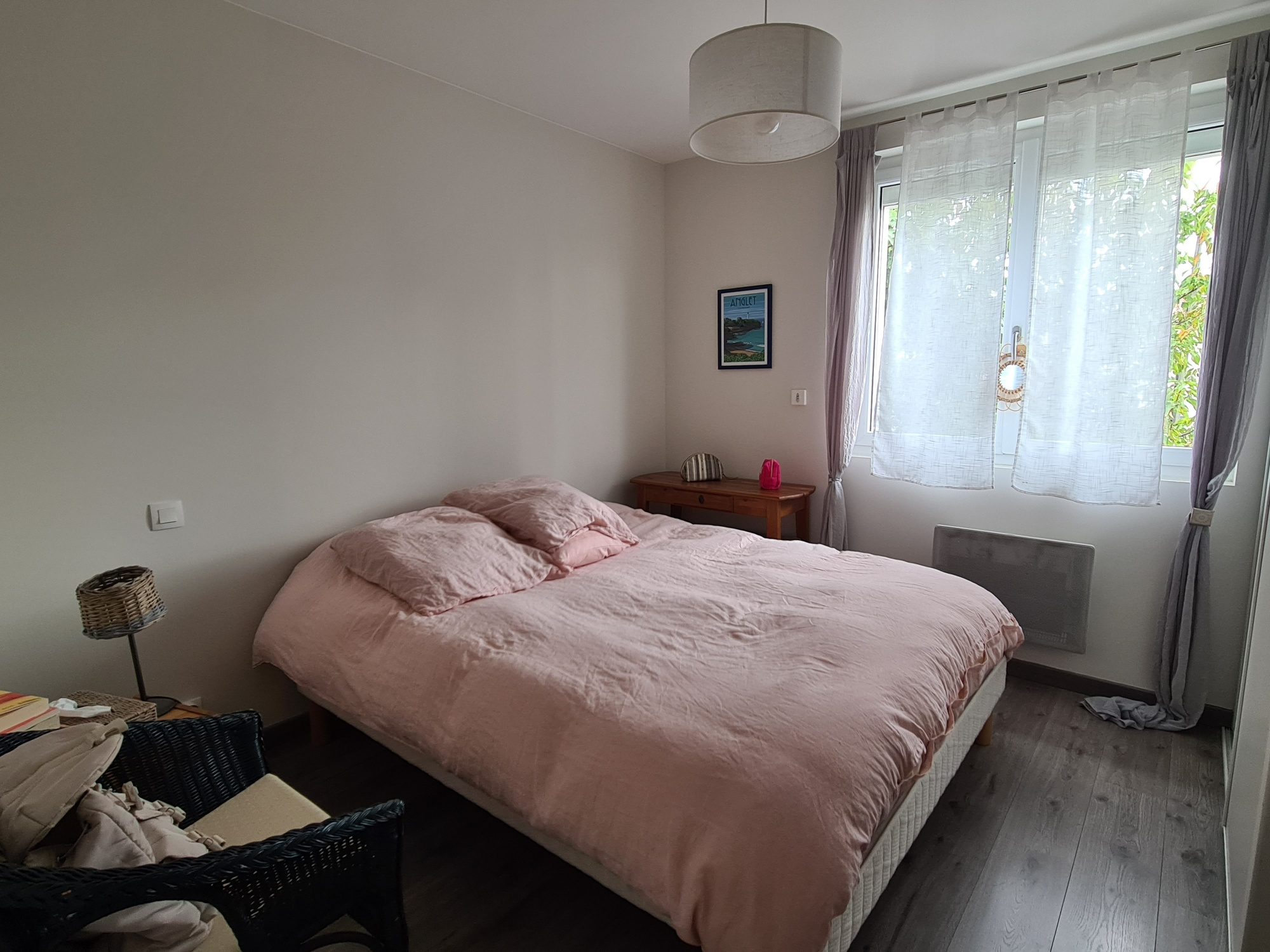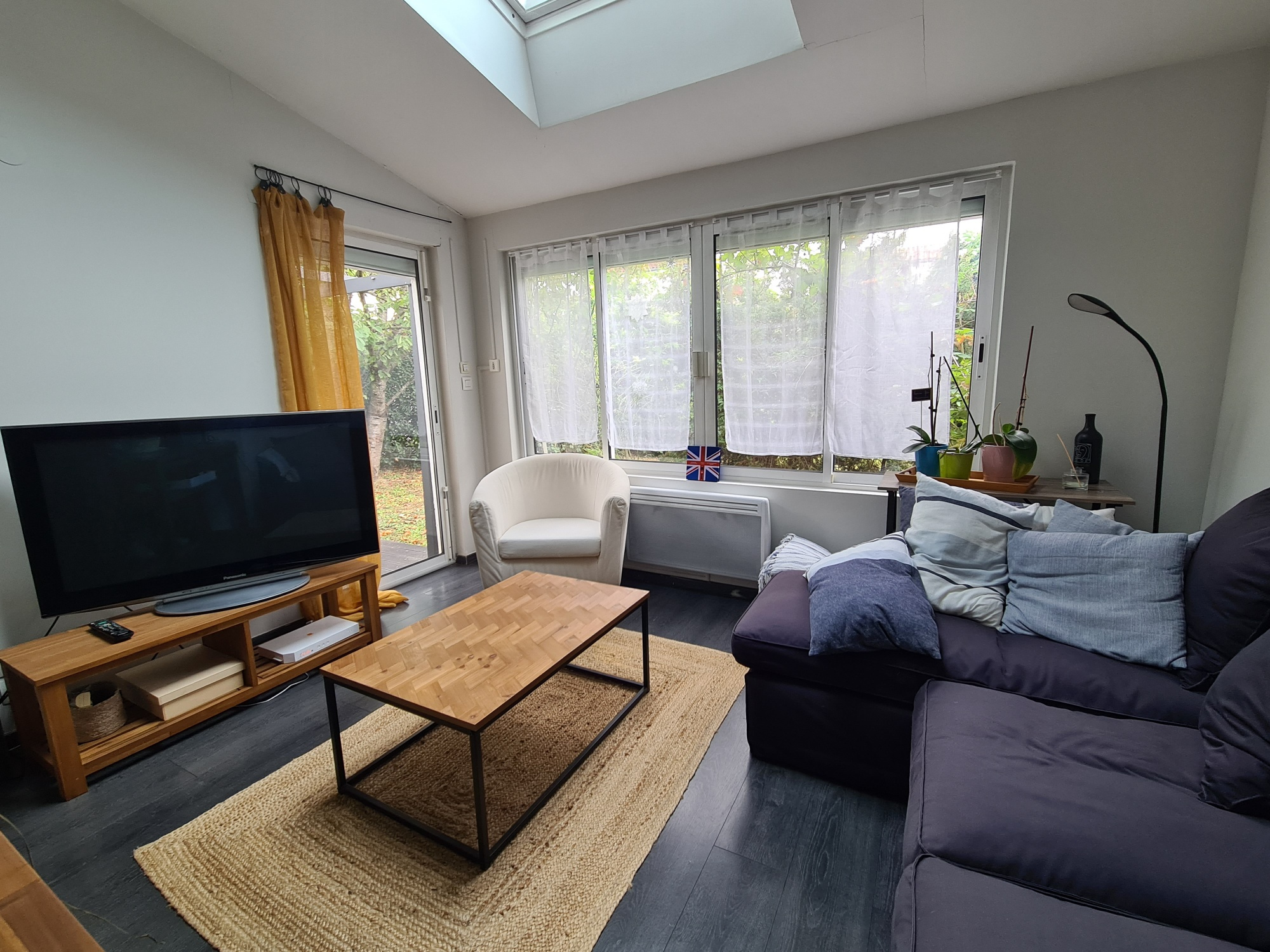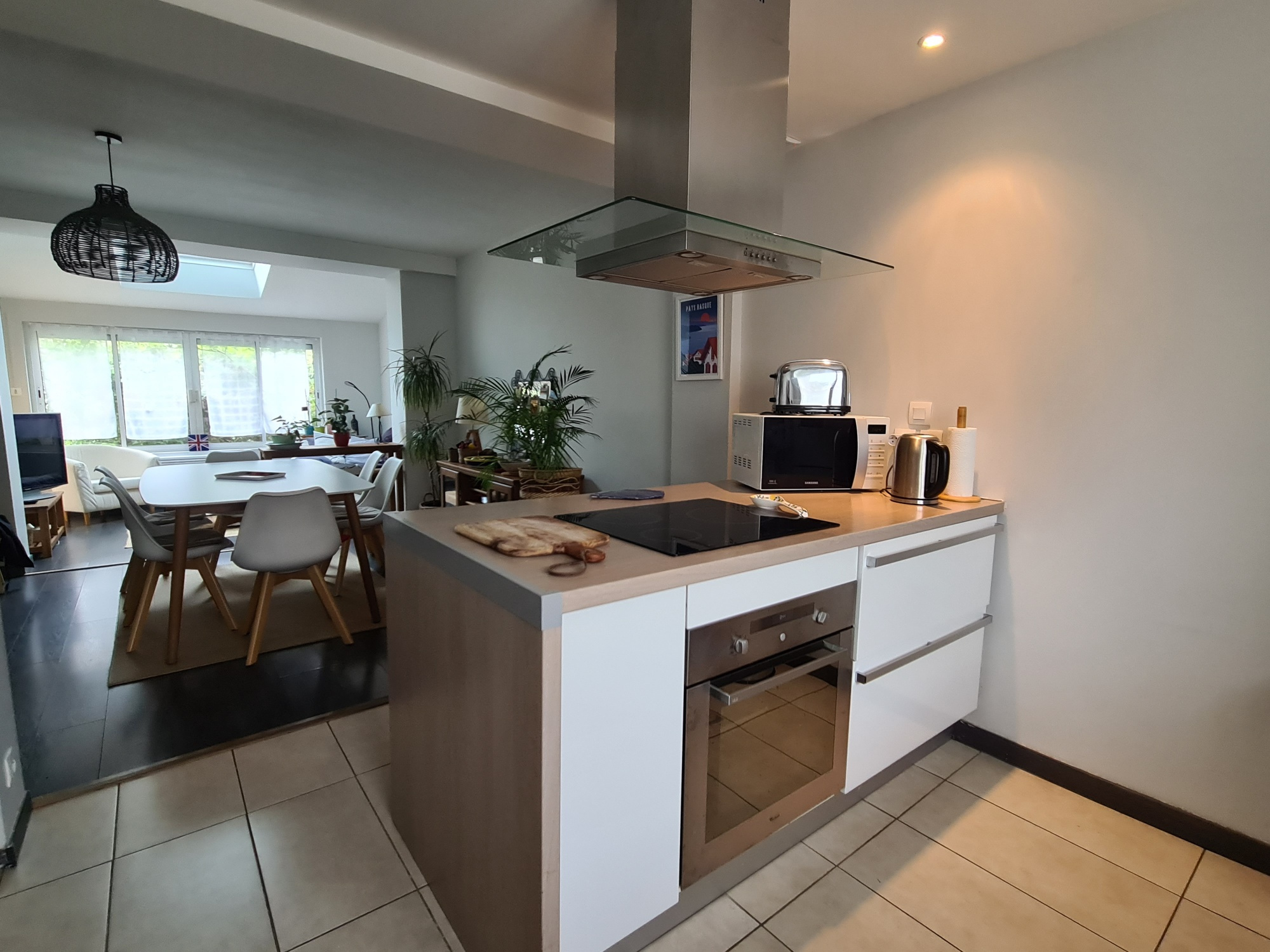 Sur une parcelle de 290 m² sans vis-à-vis, maison rénovée de 81 m² hab, offrant une belle pièce avec son salon très cocooning, sa salle à manger et sa cuisine ouverte équipée, cet espace est très agréable et convivial pour recevoir.