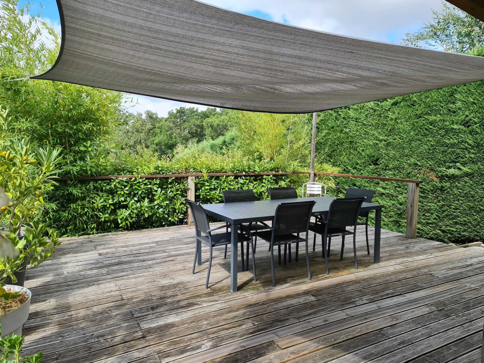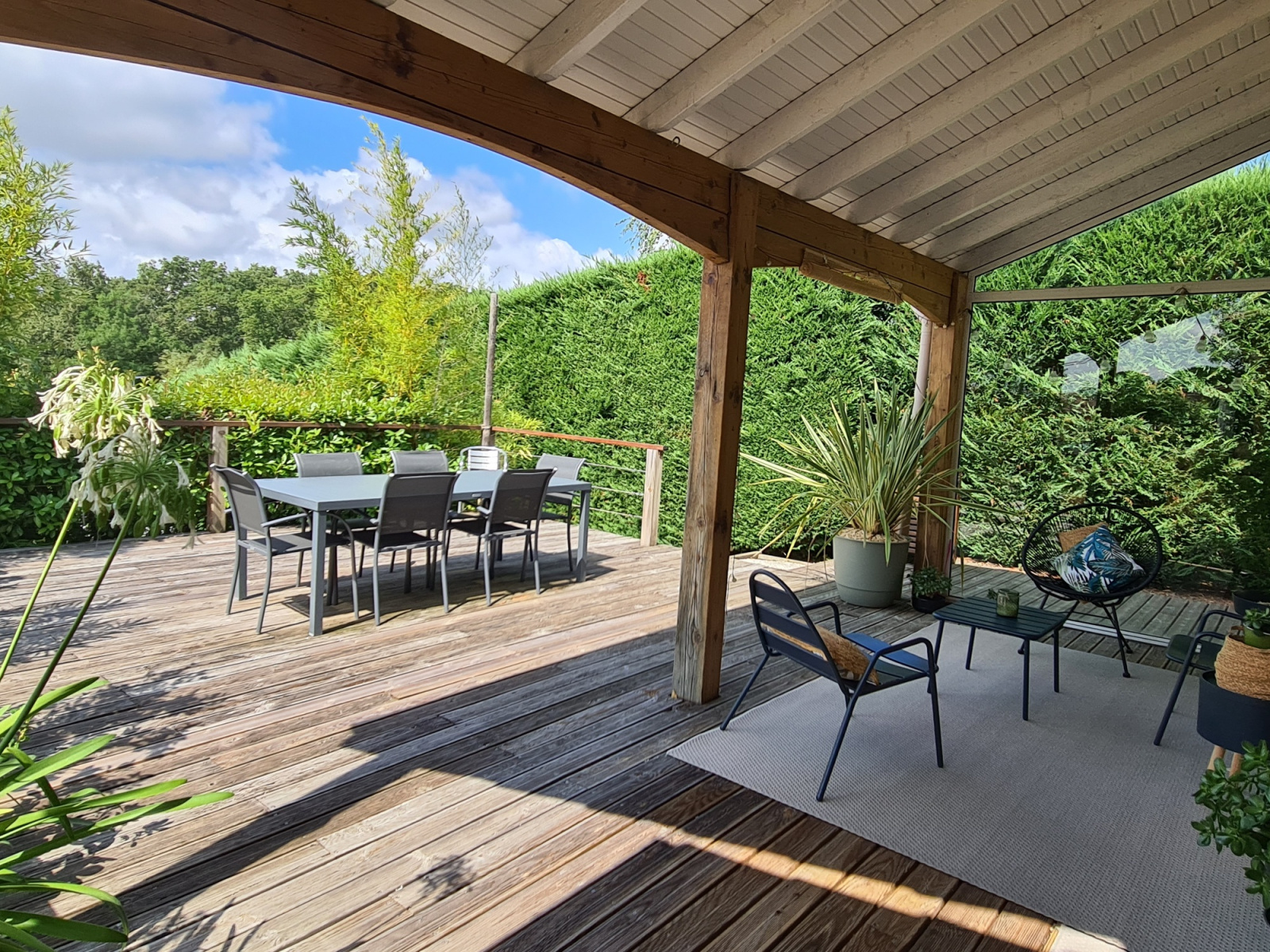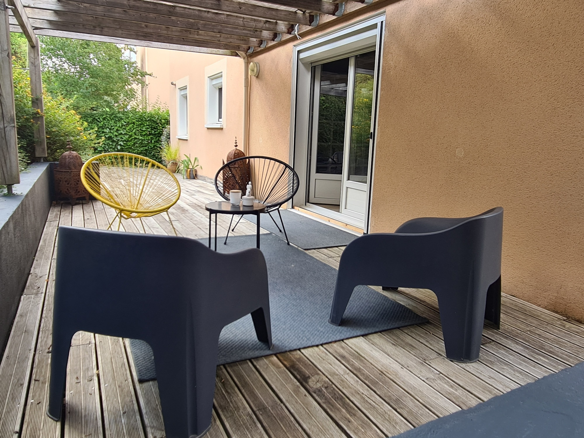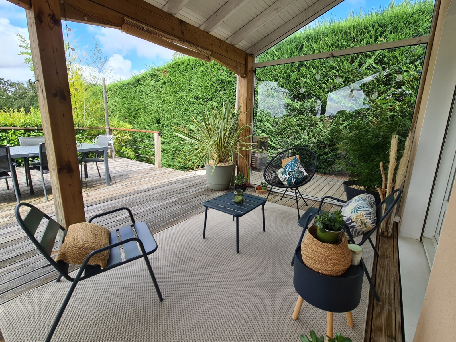 Une deuxième terrasse à l'arrière de la maison de 15 m² très intimiste invite au repos.