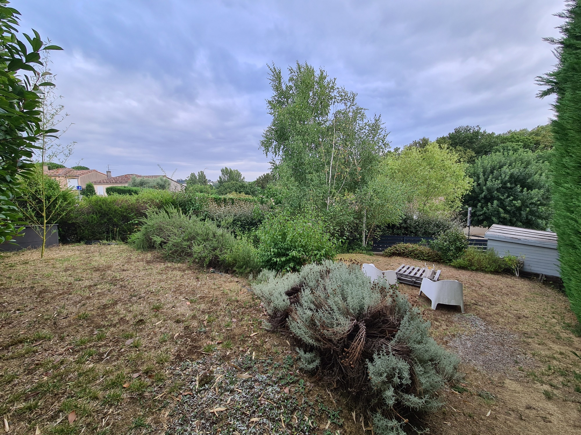 Le jardin arboré de 644 m², réparti sur deux niveaux, complète ce bien en offrant un espace de jeux, de détente ou de jardinage.