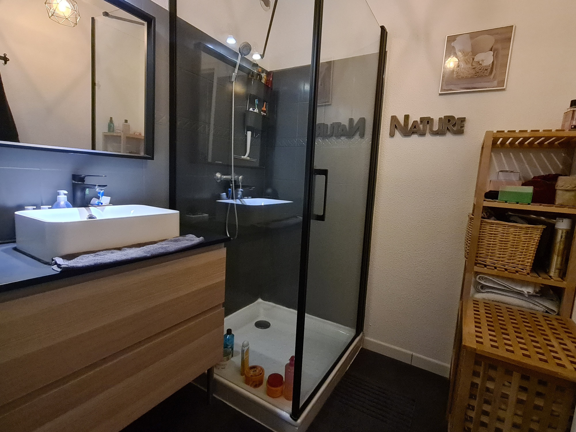 Le sous sol est un vrai plus par son aménagement il dispose d’un garage 1 voiture, d’une buanderie, d’un bureau et d’une pièce aménagée en petit salon ou chambre pour recevoir copains et amis.