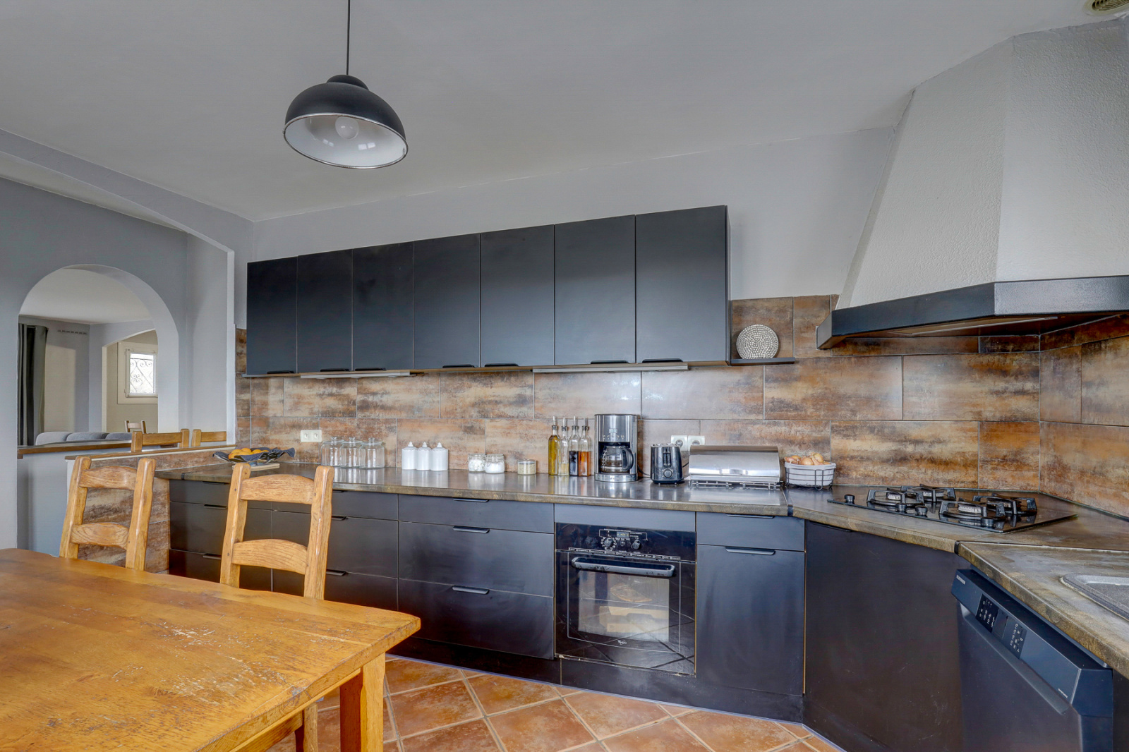 Au rez-de-chaussée, vous entrez directement sur un vaste espace de réception, composé d’un séjour spacieux et d’une cuisine entièrement équipée ouverte, formant un ensemble convivial, idéal pour recevoir.